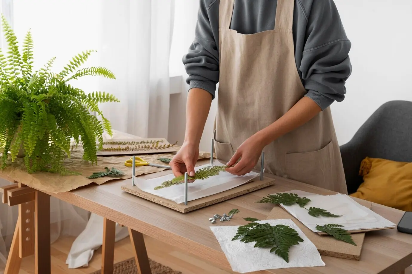 Bambus ist botanisch ein Gras, das in der Verarbeitung zu Lamellen oder strandgewobenen Blöcken verdichtet wird. Die resultierende Härte ist beeindruckend, doch Klebstoffe und Faserrichtung beeinflussen Feuchteschwankungen und Schleifverhalten. Zu viel Nässe kann Kanten aufstellen, zu trockene Luft fördert Fugen. Pflege, die Fasern respektiert, nutzt pH-neutrale Reiniger, zurückhaltende Feuchtigkeit und Oberflächen, die Bewegungen mitgehen. Beim Schleifen braucht es sehr scharfe Bänder und ruhigen, kreuzweisen Vorschub.